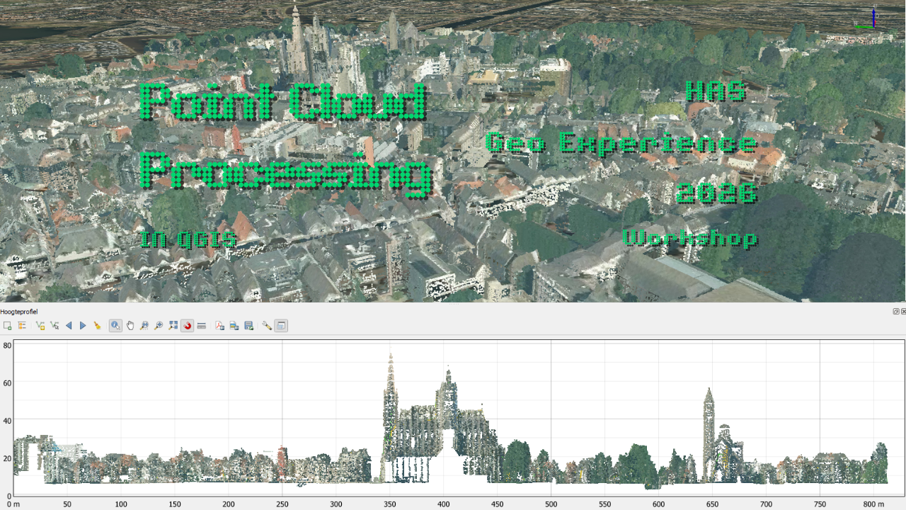 In deze workshop leer je QGIS te gebruiken om puntenwolken te visualiseren in 2D en 3D, te filteren met expressies en te interpoleren naar raster formaat.