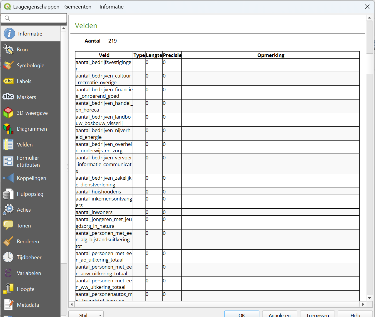 in de toolbar van de attributentabel. - Geef als veldnaam