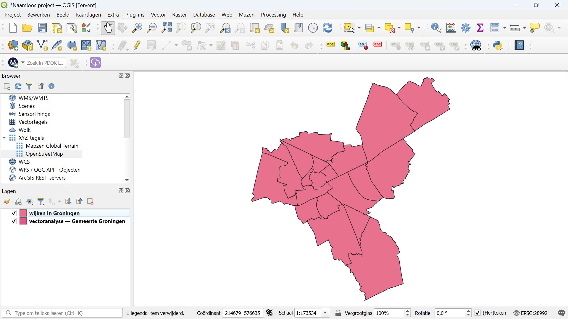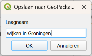 om naar vectoranalyse.gpkg te navigeren en typ in de popup als Laagnaam wijken in Groningen en klik OK.