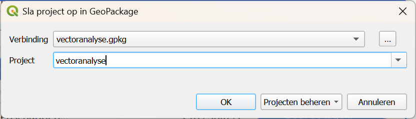 Dit is een goed moment om je project op te slaan in je GeoPackage.