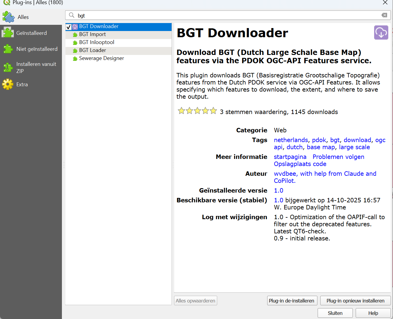 Om BGT objecten eenvoudig te downloaden, gebruiken we de BGT Downloader plugin.