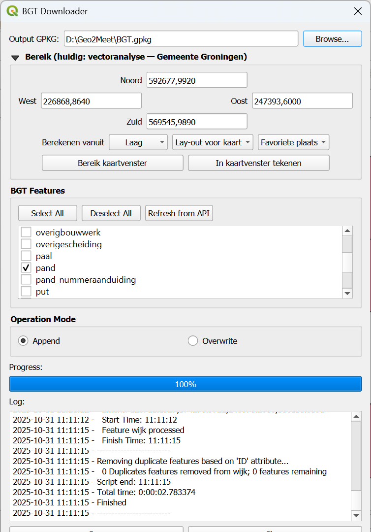 We gaan nu de panden in Groningen downloaden met de BGT Downloader plugin.