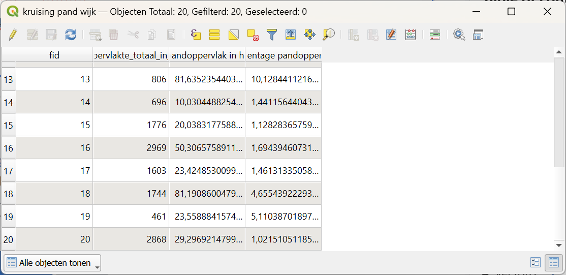 De volgende stap om de panden te versnijden met de wijkenlaag.
