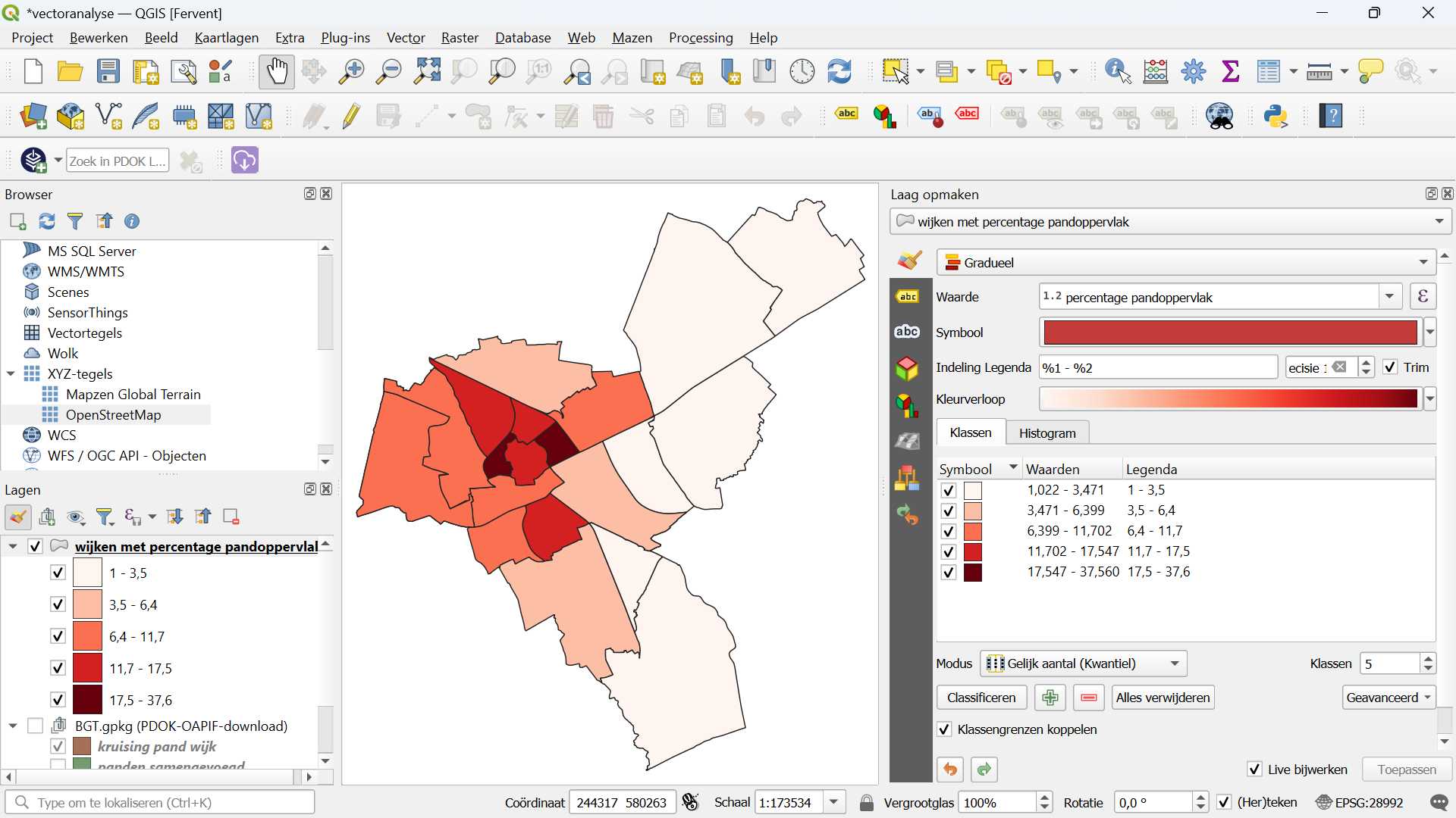 - Selecteer de laag wijken met percentage pandoppervlak in het Lagenpaneel.