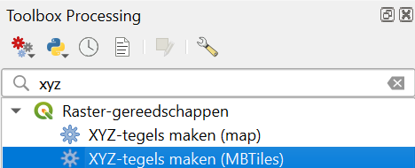 3. Ga naar Raster-gereedschappen | XYZ-tegels maken (MBTiles).