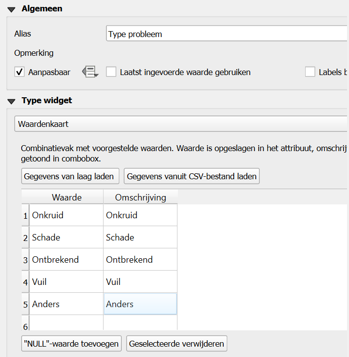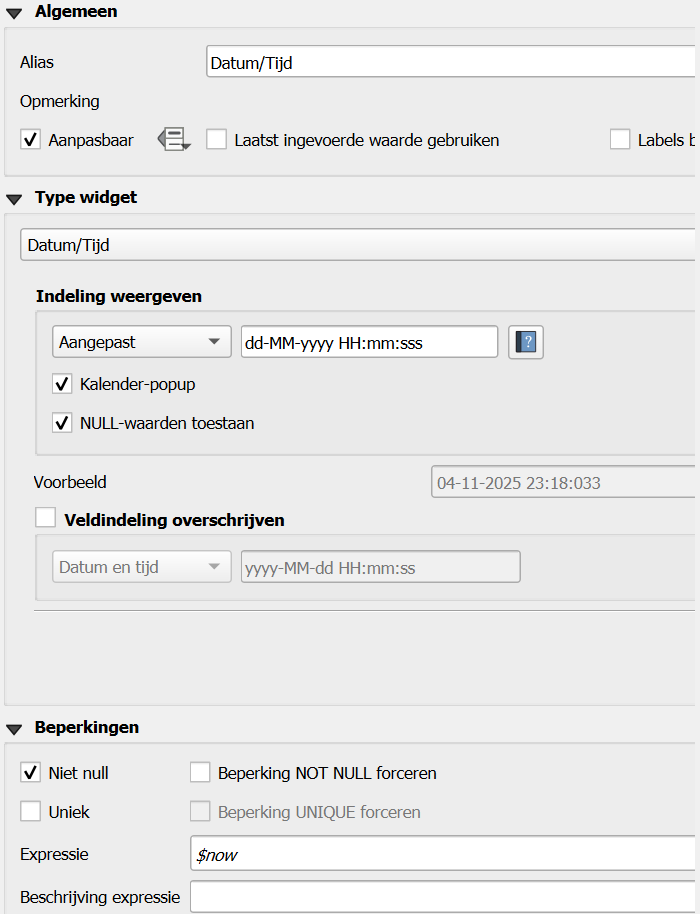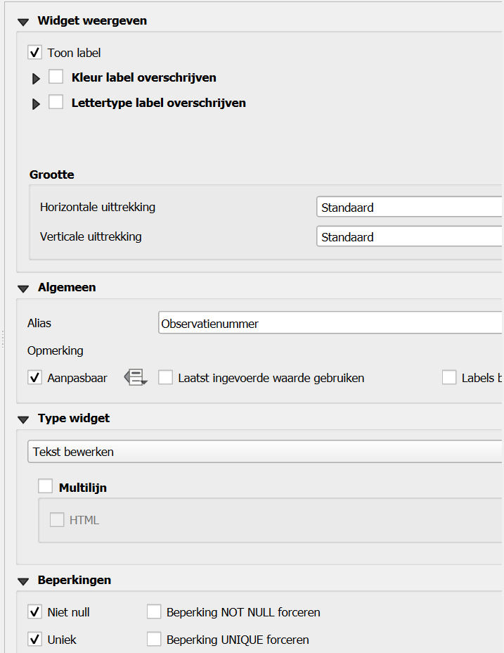 Mergin Maps ondersteunt veel verschillende widgets. Je kunt ze hier bekijken.