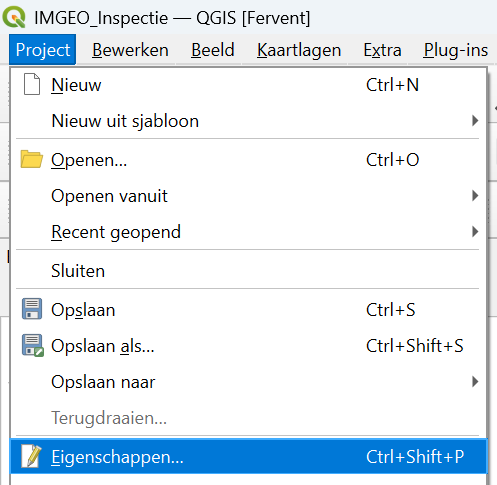 1. Ga in het hoofdmenu naar Project | Eigenschappen....