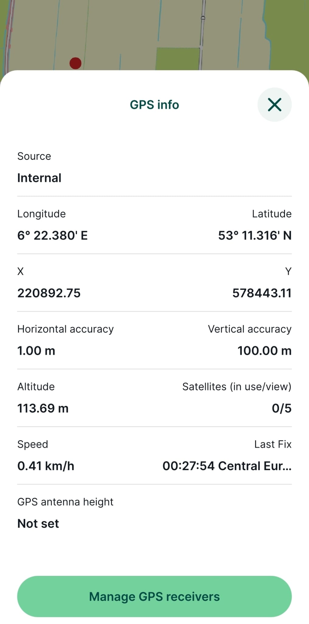 Tik op de waarde van de GPS-nauwkeurigheid. Dit geeft je de GPS-meting weer.