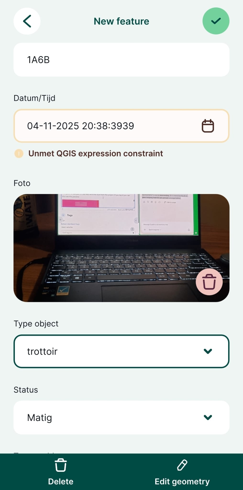 om de observatie op te slaan. Tik op Edit geometry als je het punt nog wilt verplaatsen.