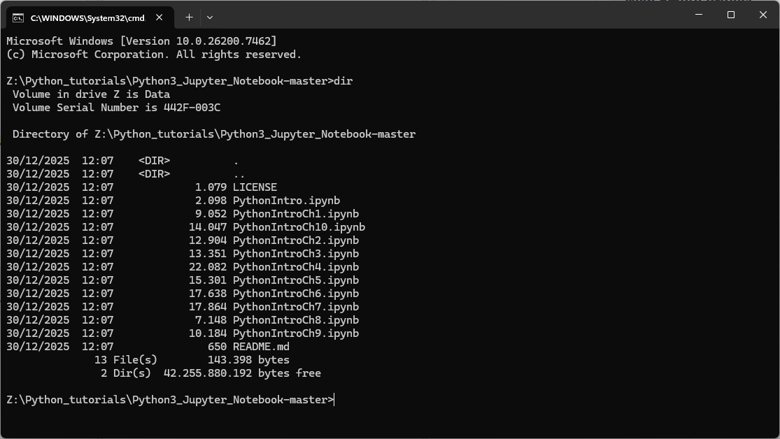 5. Check if the Jupyter Notebooks are there, using the dir command.