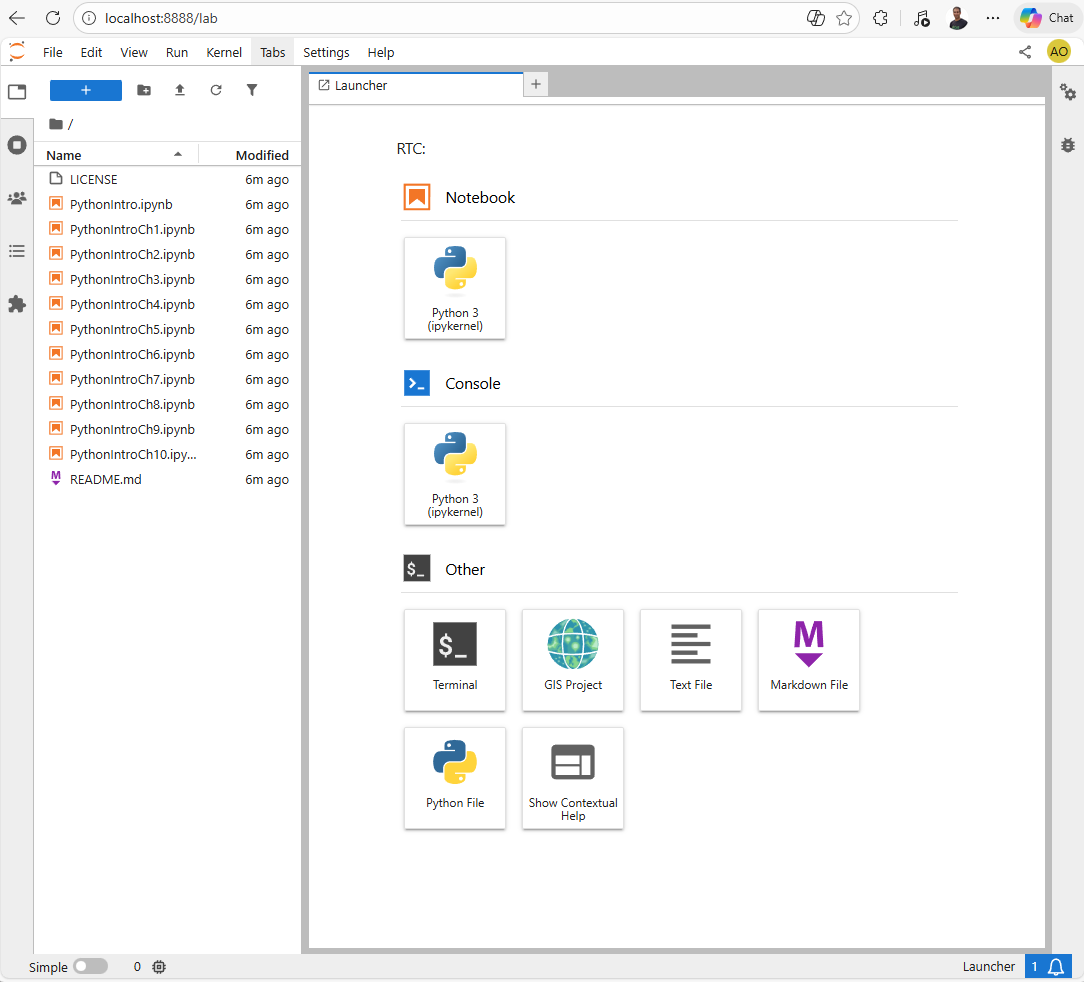 - Double-click on PythonIntro.ipynb to launch the Jupyter Notebook.