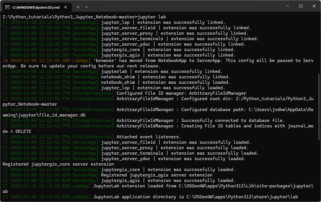 Now you've installed Jupyter Lab in your QGIS OSGeo4W environment, you want to use it with Jupyter Notebooks.