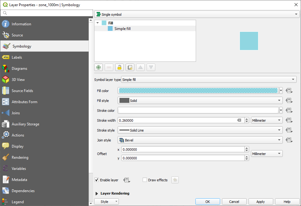 Sélectionnez maintenant la couche zone_1000m et allez vers symbologie