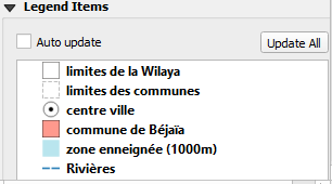 Sélectionner maintenant la couche limites_bougie_commune et cliquez sur le bouton droit de la souris 🡺 Styles 🡺 Coller le style 🡺 toutes catégories de style