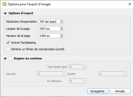 pour exporter la carte comme image 🡺 Choisissez le répertoire de sortie, le format, et nommez le fichier et cliquez sur Sauvegarder -