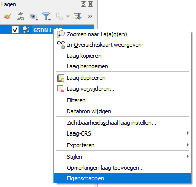 1. Klik in het Lagen-paneel met de rechtermuisknop op de point cloud-laag en kies Eigenschappen... in het contextmenu.