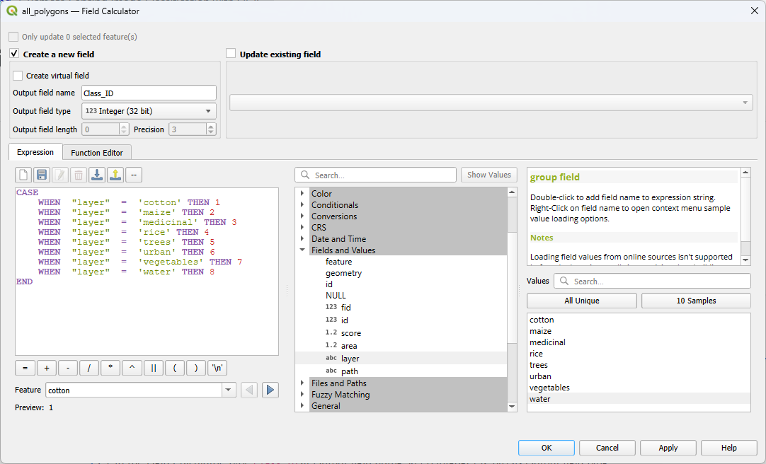 button to refresh the layers list in the drop-down menu. At Vector field choose Class_ID.