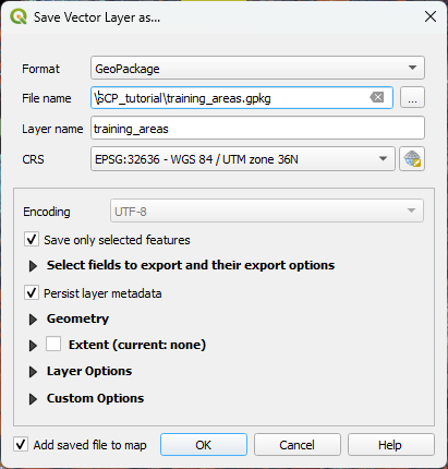 - Browse to the location where you want to save the output GeoTIFF and save it as cropmap.tif.