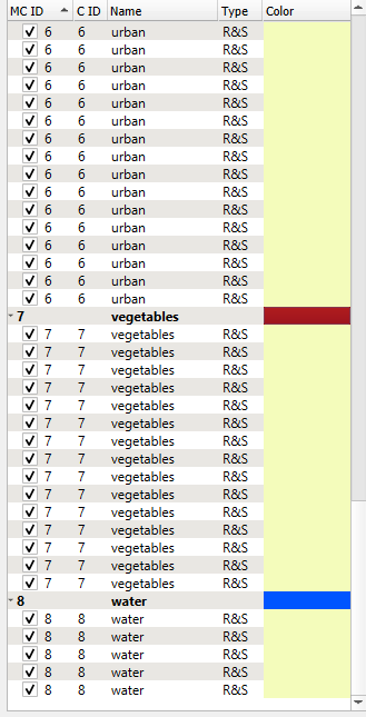 10. Click on the Color column to change the colour of a Macro Class (the bold line in the table). We don't need to change this for the micro classes.