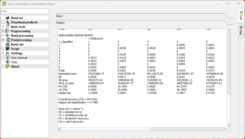 When the accuracy assessment is done, the tool will show you the results in the Output section of the dialog.