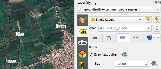 Later we'll use AI-based segmentation to delineate the parcels belonging to the ground truth points. To make it easier we can label the points with the class name.