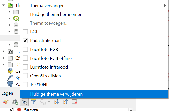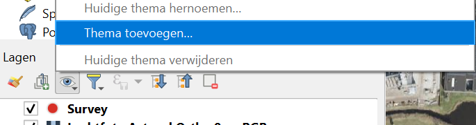 Zorg ervoor dat de laag Survey zichtbaar is (vakje aangevinkt) in het Lagen-paneel. In alle kaartthema's moet deze laag aangevinkt zijn.