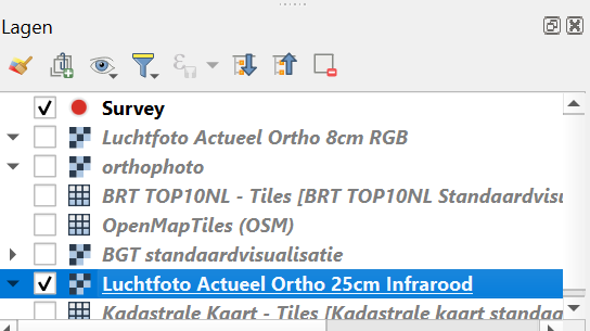 5. Vink nu het vakje uit voor Luchtfoto Actueel Ortho 8cm RGB en vink het vakje aan voor Luchtfoto Actueel Ortho 25cm Infrarood.