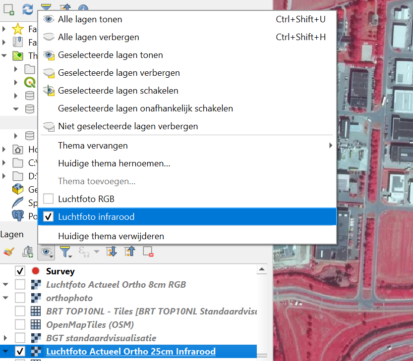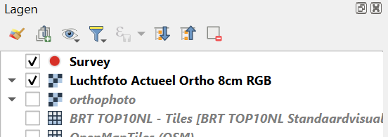 Verberg alle andere lagen, behalve degene die we als achtergrond willen tonen. In dit geval vinken we het vakje aan voor Luchtfoto Actueel Ortho 8cm RGB.