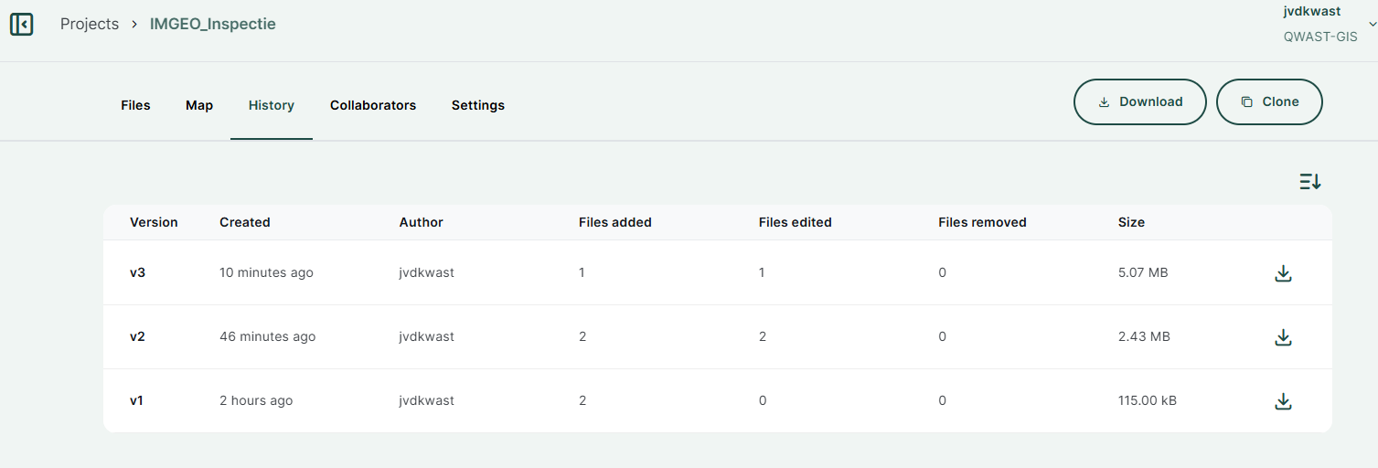 Daar kun je alle versies vinden, wanneer ze zijn aangemaakt, welke gebruiker de wijzigingen heeft doorgevoerd en wat de wijzigingen waren. Je kunt hier ook eerdere versies downloaden.