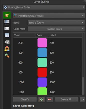 13. Go to the Layer styling panel, set the Render Type to Paletted/Unique values and press the Classify button.