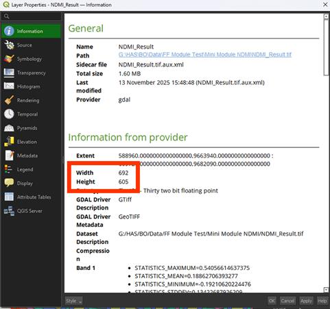 2. Right click the NDMI_Results layer > Properties (you don’t need to close the Rasterize window).