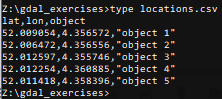 </OGRVRTDataSource>3. Save the file as locations.vrt in the same folder as locations.csv.