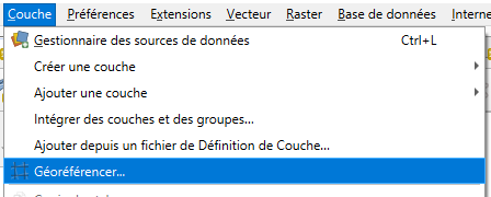 Dans le menu principal, accédez à Couches 🡺 Géoréférencer…