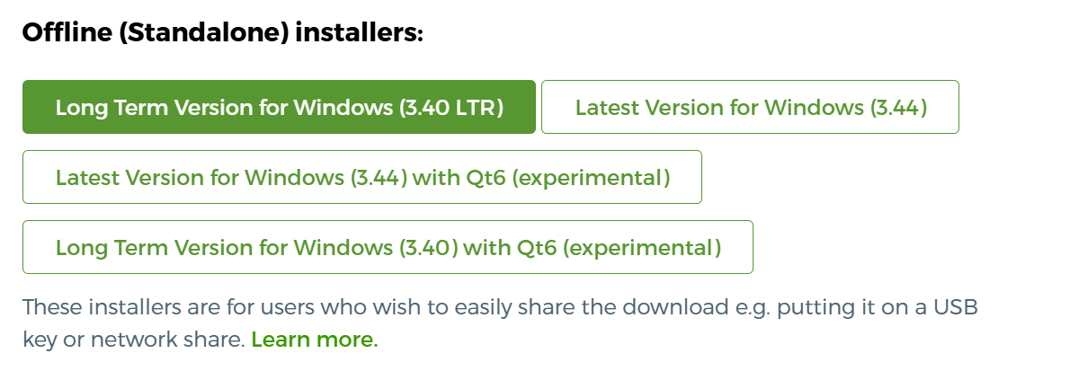 1. Une fois dans la page de téléchargement, choisissez l’une des versions stables (pour cet exercice choisissez la version LTR 3.40)