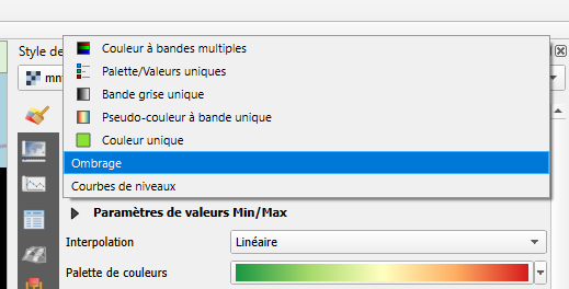 Cliquez sur cette nouvelle couche et changez le style de couche en Ombrage et l’autre en courbes de niveau.