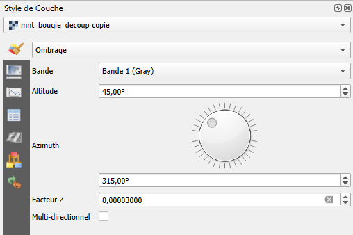 À titre indicatif, un facteur Z d’environ 0,00001 constitue une bonne base. Pour obtenir un relief plus lisible et visuellement plus marqué, il est recommandé d’utiliser un facteur Z de 0,00003.