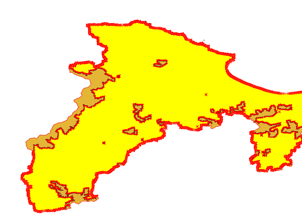 2. Cliquez sur une zone ou la valeur était observé égale à 0. Cette partie va s’illuminer en couleur jaune. Puis cliquez sur pour supprimez cette partie du polygone.