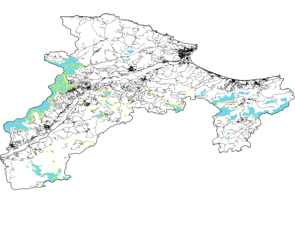 Vous verrez que toutes route qui intersecte avec la zone enneigée est sélectionnée (couleur jaune).
