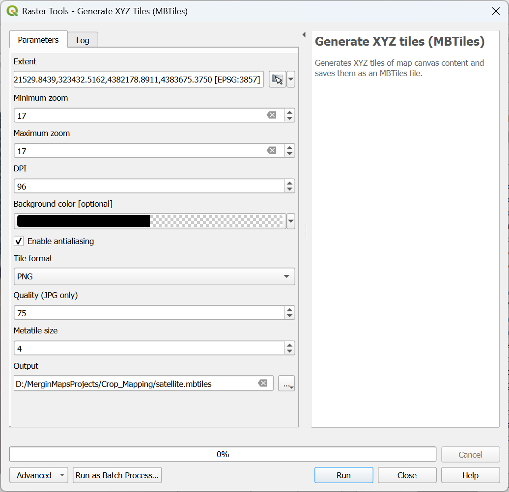 6. Save the result (satellite.mbtiles) to the same folder as your Mergin Maps project. Only then it will be later synchronized.