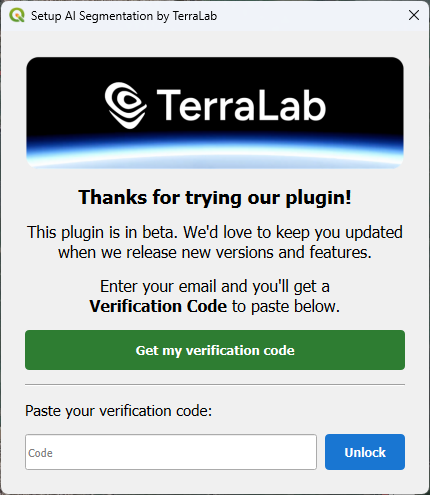 7. Paste the verification code in the dialog and click Unlock.