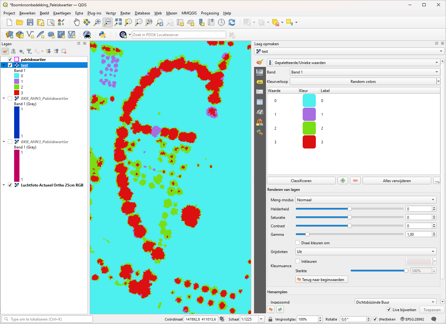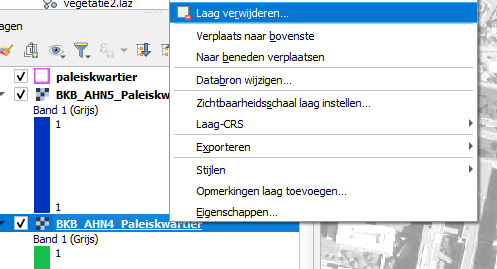 2. Verwijder de groene laag, de laag BKB_AHN4_Paleiskwartier.