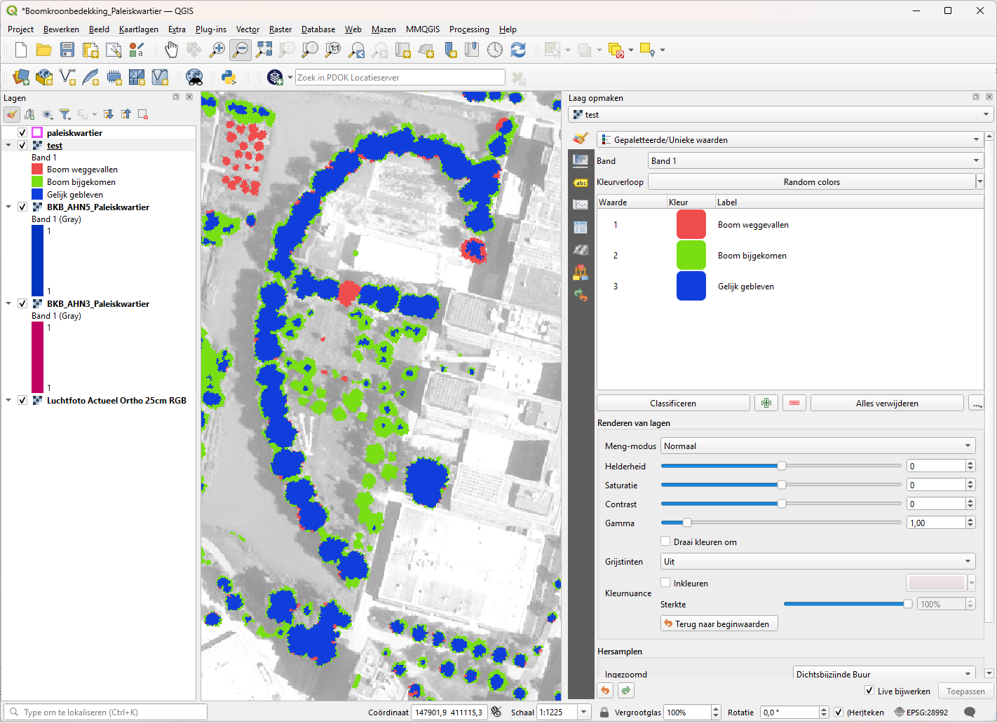 12. Hernoem het label bij klasse 2 naar “Boom bijgekomen”, en geef het een groene kleur.